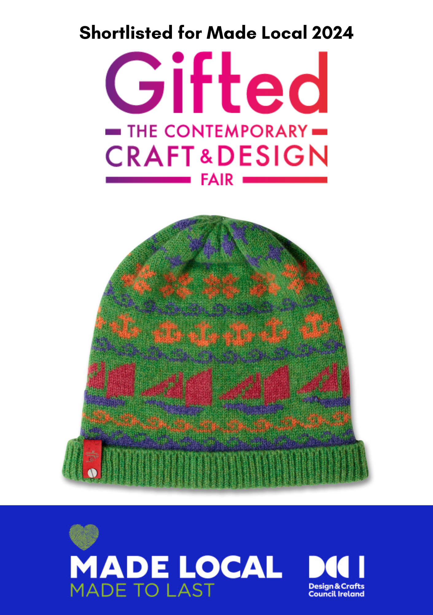 The Sailor Hat - A Heirloom Knitted piece of Wearable Art, shortlisted for the Design & Crafts Council Ireland Made Local Display Area at Gifted at the RDS 2024.